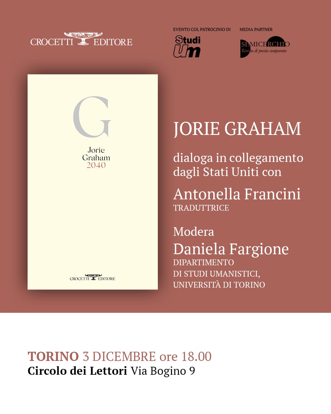 JORIE GRAHAM dialoga in collegamento dagli Stati Uniti con ANTONELLA FRANCINI (Traduttrice) Modera Daniela Fargione (Univ. di Torino)
